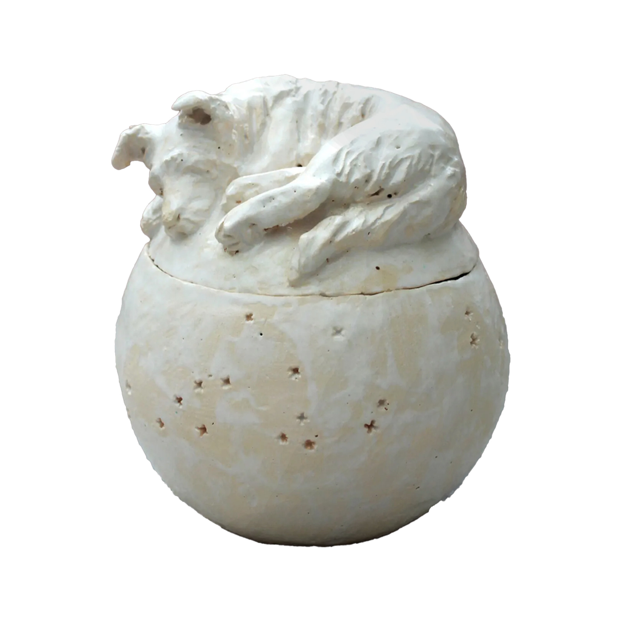 “Diese Urne aus Keramik wurde so gestaltet, dass sie den Charakter des Tieres widerspiegelt und das Andenken an einen geliebten vierbeinigen Begleiter ehrt.”